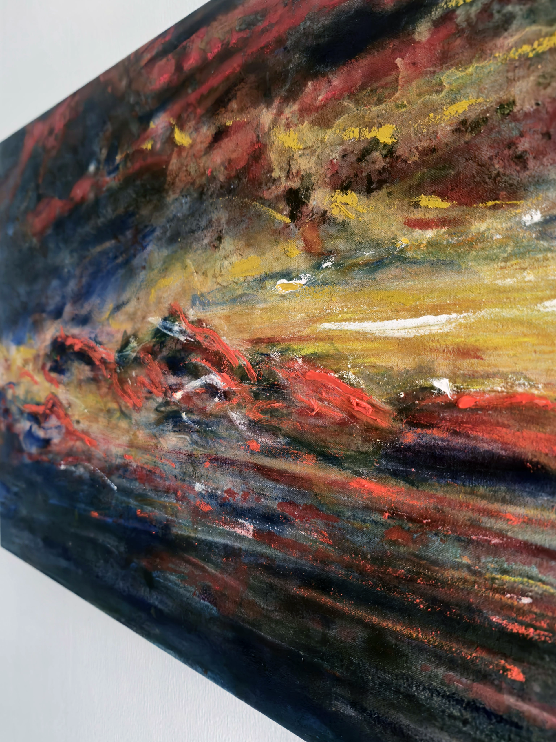 I explore the balance between light and shadow, capturing fleeting moments that leave a lasting impression. My work reflects the tension of holding onto something transient—a feeling, a connection, or even light itself. Through contrasting colours, I create a space where the tangible meets the illusory, evoking a quiet longing for what is just out of reach, yet still finding beauty in the balance.
